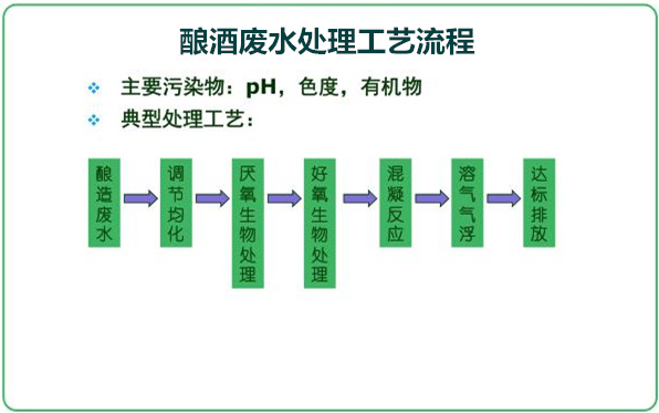 寧波鄞州區(qū)咸祥鎮(zhèn)釀香酒業(yè)公司主要釀造高檔白酒,在白酒釀造過程中會產(chǎn)生各種釀造廢水,其中主要污染物有PH、色度、有機物等,廢水的可生化性比較高,且含COD的濃度也比較大,我公司針對該公司釀酒廢水的特點,專門設(shè)計了“厭氧+好氧”的組合生物處理工藝,首先去除廢水中的大部分COD與有機物,然后再采用“混凝+氣浮”的物化處理工藝,來進一步去除廢水體中的懸浮物和COD,最終保證該公司排放的廢水穩(wěn)定達(dá)標(biāo)。